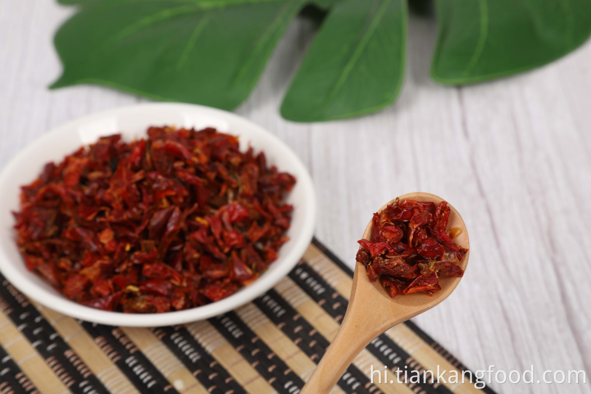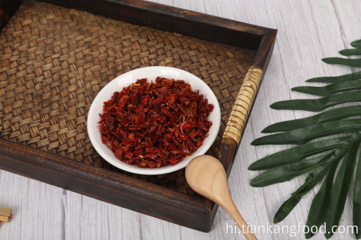 Product will be obtained from high quality, freshly harvested Red Bell Pepper, which will be selected, washed, trimmed, cut and dried, then machine selecting, hand selecting, inspection, packaging and approval. This product will not be grown from Genetically Modified Seeds. Prior to packaging the product will be inspected and passed through magnets and metal detectors to remove ferrous and non-ferrous metallic contamination. Detector sensitivity shall be 1.5-mm minimum. Product must comply with current Good Manufacturing Practice in Manufacturing and Packaging. |